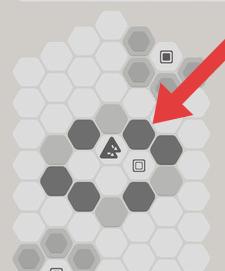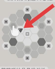 2、操控者需要观察场景,将三角形移动至黑色六边形围绕的中心区域,完成布局阶段的位置定位。