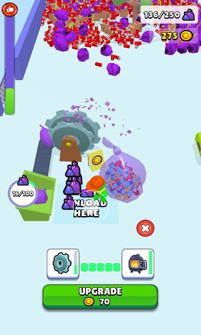 1、精准点击收集:集中精力瞄准垃圾密集区域快速点击,利用连续点击的Combo机制提升垃圾破坏效率,在有限时间内最大化垃圾收集量以获取更多金币。