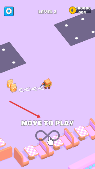 1、玩法启动:Level2点击下方无限符号,触发角色移动机制。