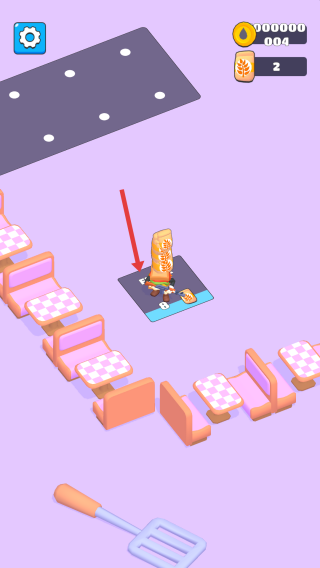 3、区域搭建:将收集的地板放置指定位置,构建餐厅地面区域,推进关卡。