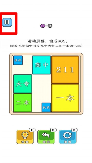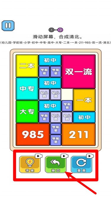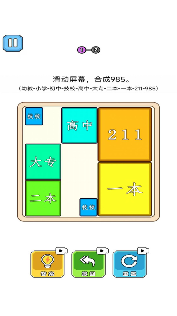 1.滑动合并操作:通过手指滑动操作,将相同学历的积木合并成更高级别的学历,逐步升级直至顶尖985高校,玩法简单又耐玩。