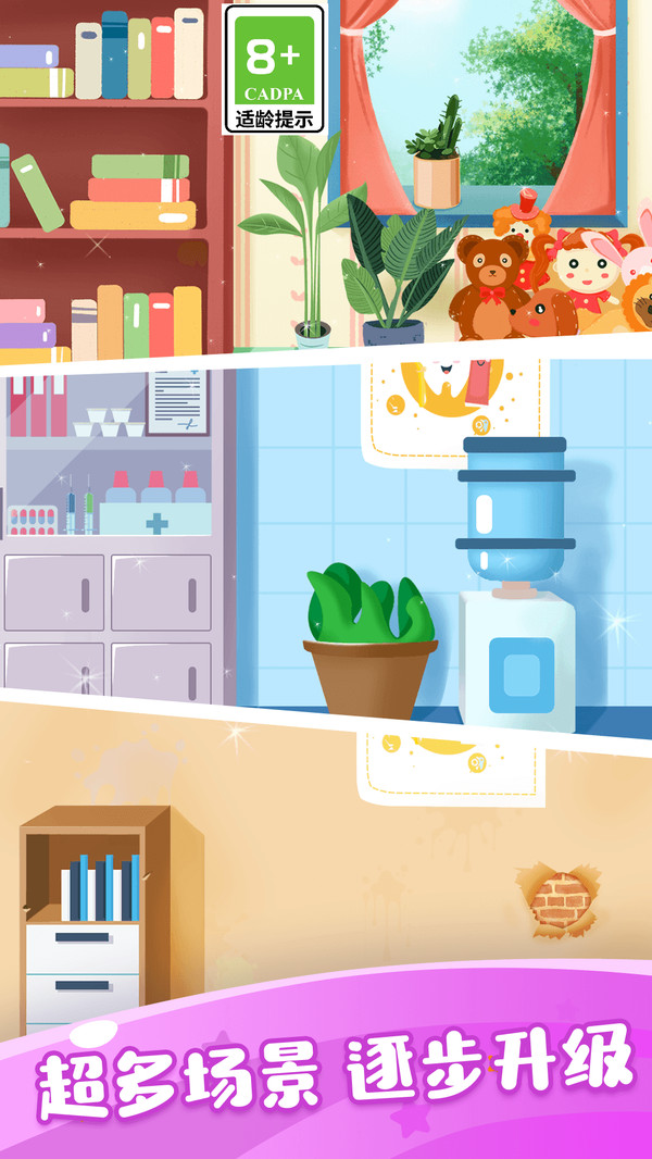 3.趣味互动机关:部分环节加入小游戏如抓虫、去牙垢、贴贴纸等,增加玩法多样性,使整个游戏过程变得更加生动有趣。