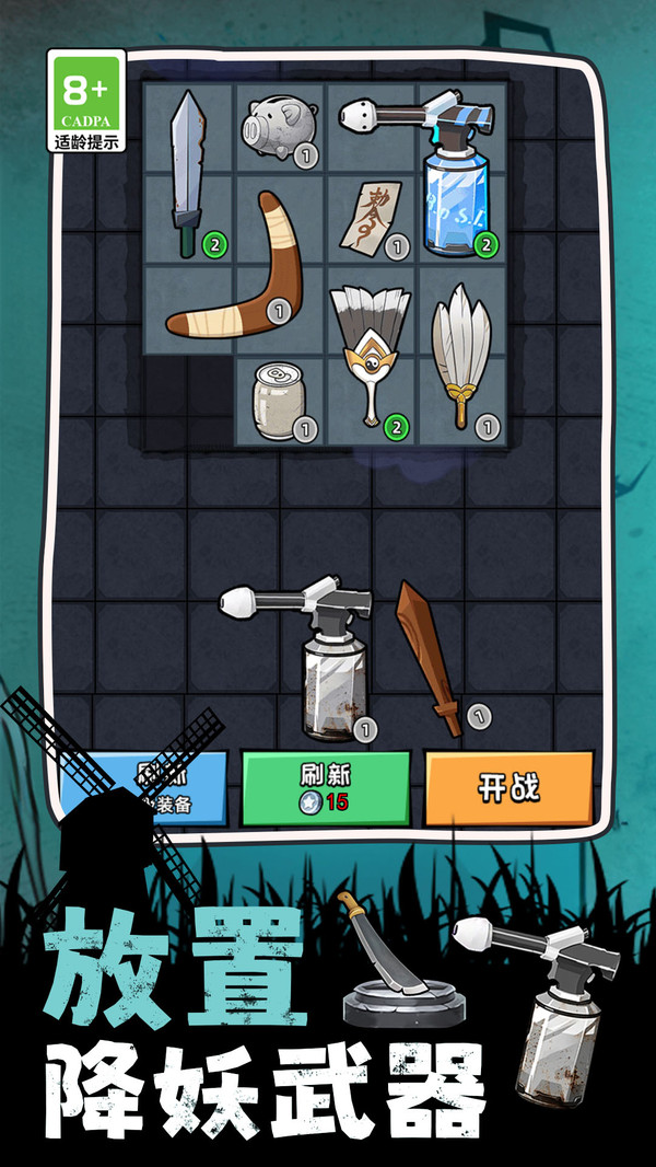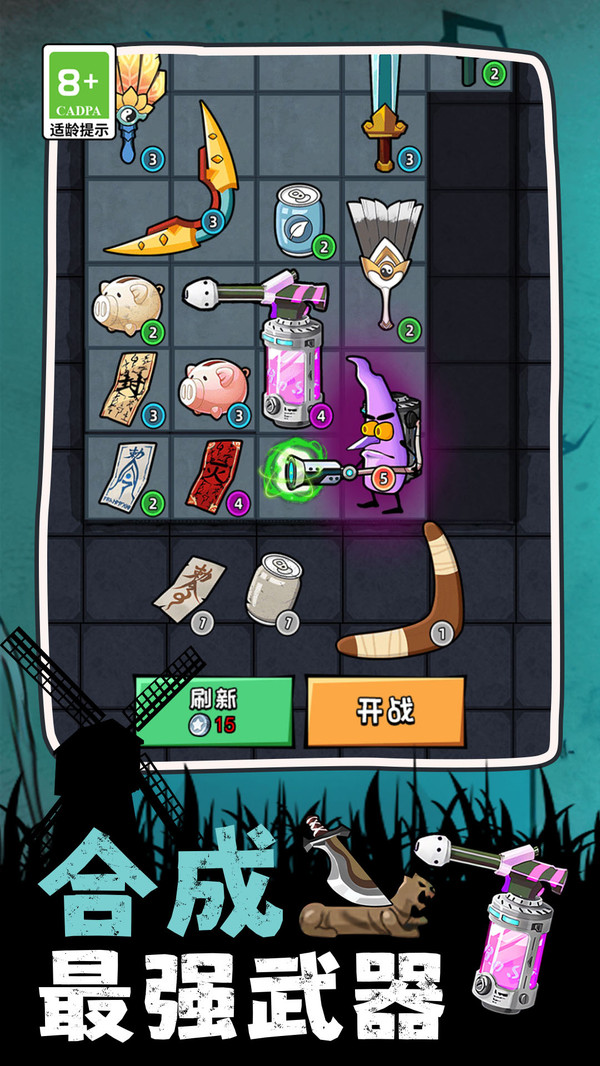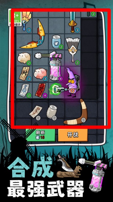 1.拖动物品合成:将相同等级的物品拖曳重叠即可完成升级合成,获得攻击力更高的进阶武器,提升整体输出能力。