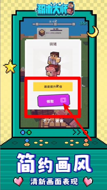 3.加速获取奖励:完成阶段任务后可选择倍速推进,领取奖励按钮可触发骑乘或功能提升更快完成建造。