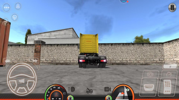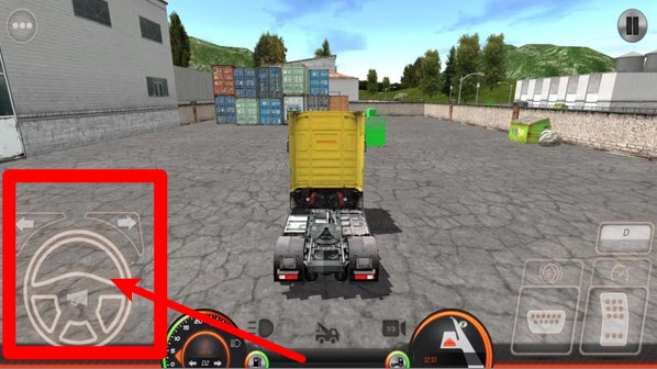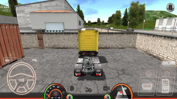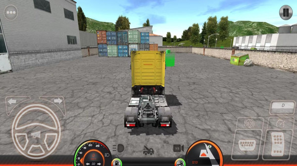 2.右下角的操作区可切换驾驶视角、控制油门刹车或挂挡,玩家需根据路况实时调整操作完成货物运输。