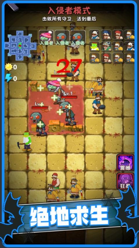 3,角色互动,僵尸阵营拥有丰富多样的角色形象,玩家可操控不同特性的入侵者,体验独特的进攻策略。