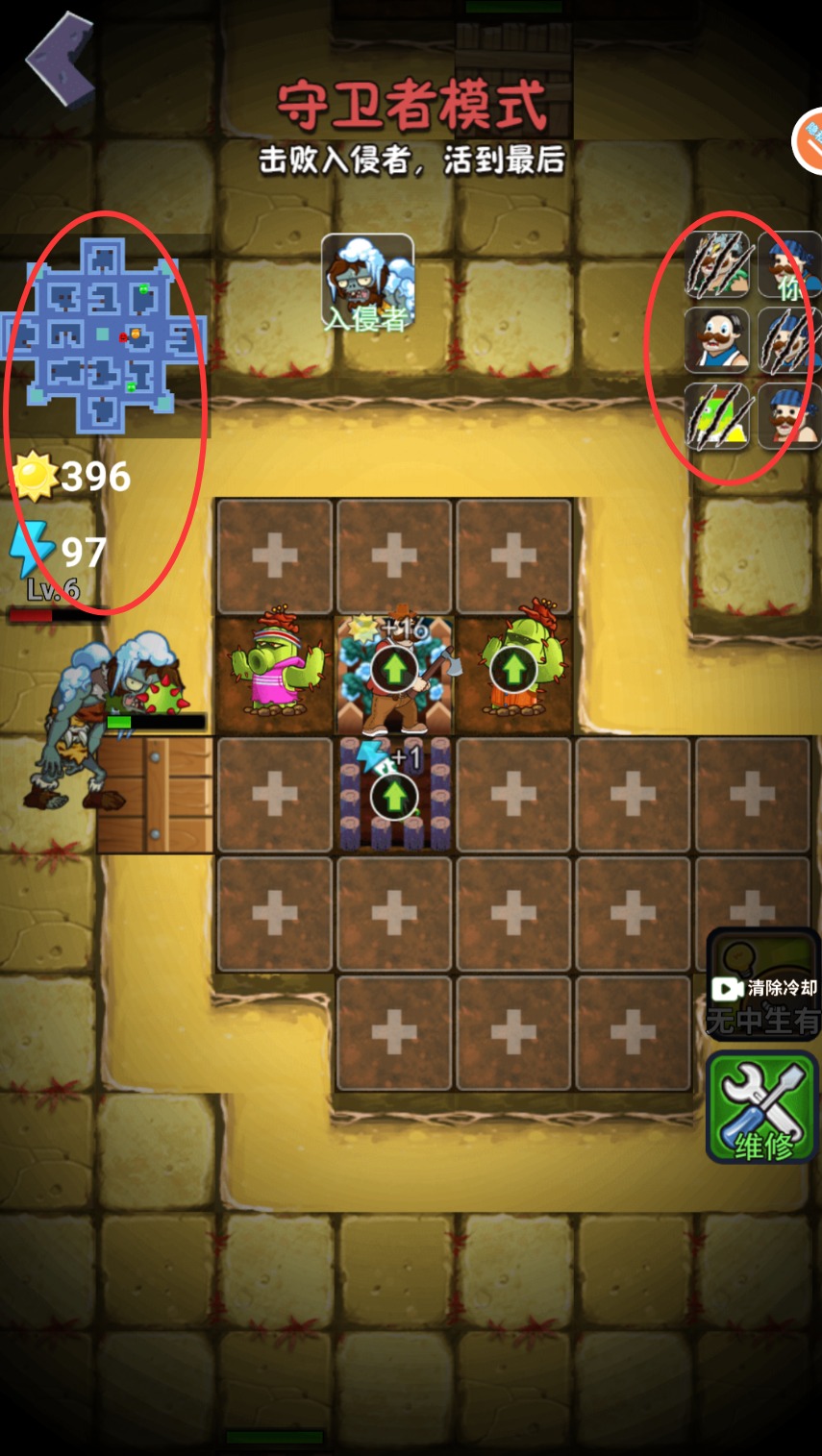 1,生存挑战,冒险过程中需时刻关注守卫者的存活数量,只要有一名守卫者坚持到最后,即可赢得胜利。