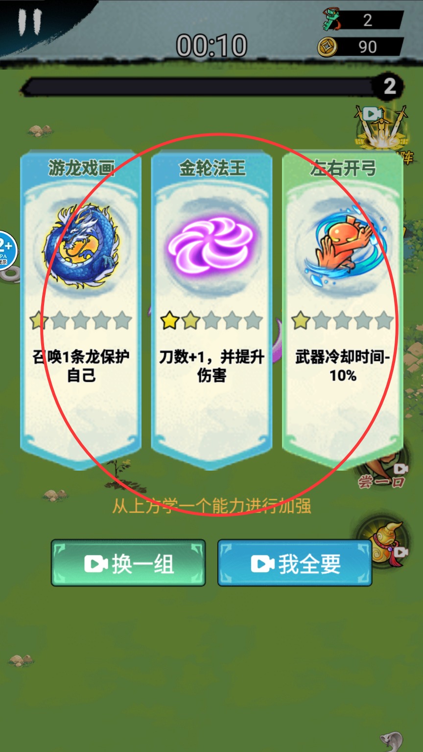 2、当顶部经验条蓄满时,系统会提供三个技能选项,选择最适合当前战斗风格的技能进行强化提升。