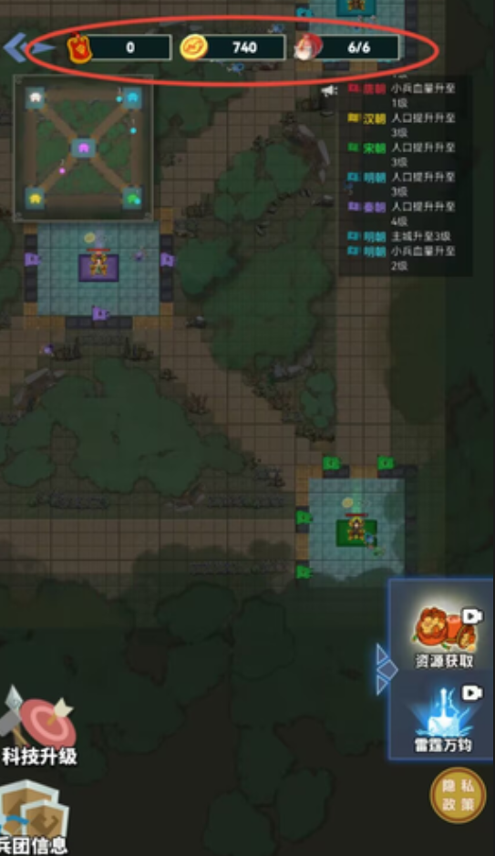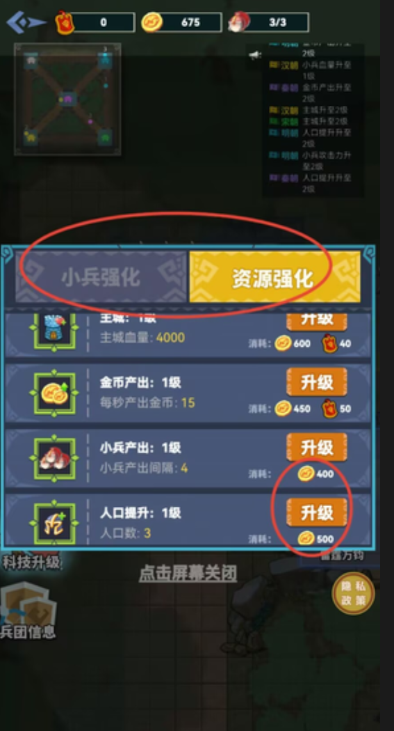 1、在科技研发界面选择资源强化分支,找到金币产出效率选项,消耗金币和材料即可提升资源获取速度。