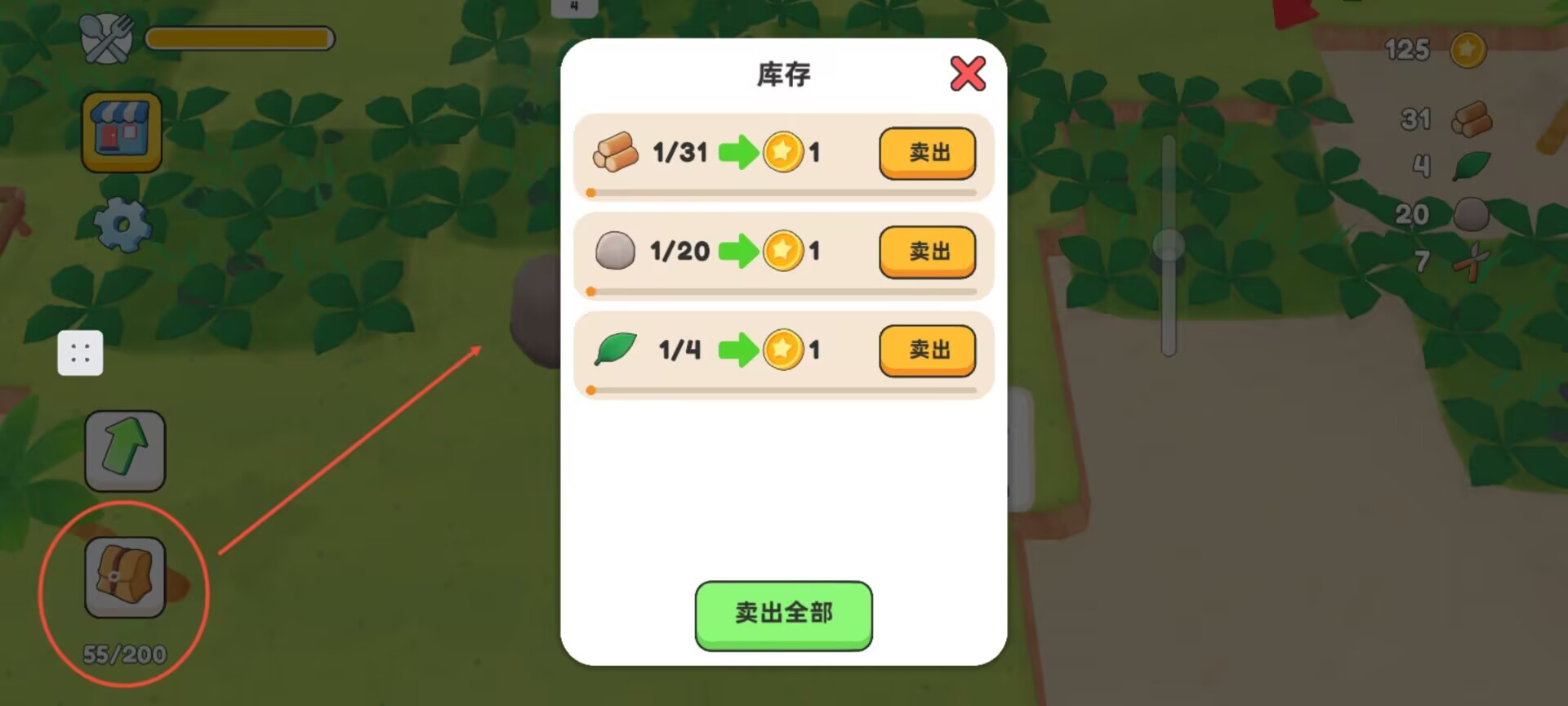 1、点击界面中的背包标识进入物品管理页面,该界面展示当前持有道具并支持出售功能操作。