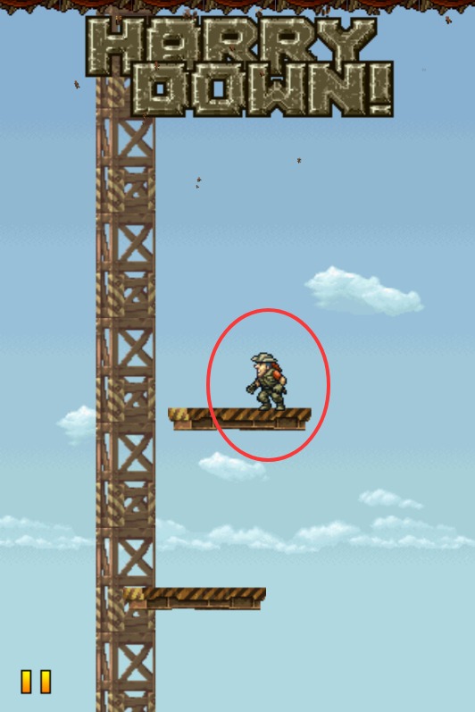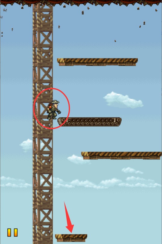 1、通过左右滑动屏幕控制角色横向移动,精准调整落点位置以对准下方平台。