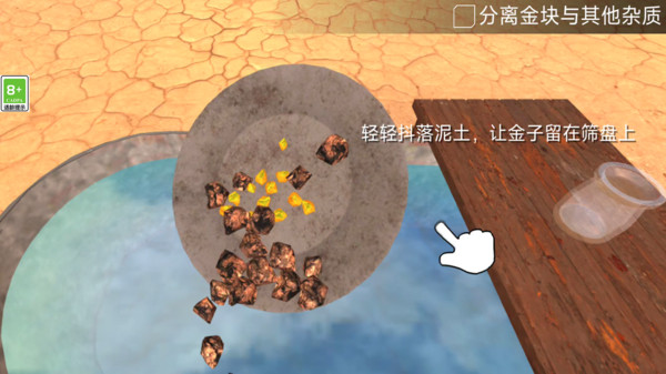 3.分离金石杂质:通过在筛盘中轻轻摇晃洗净泥沙,使金块沉在底部便于分离提取,操作简单成就感十足。