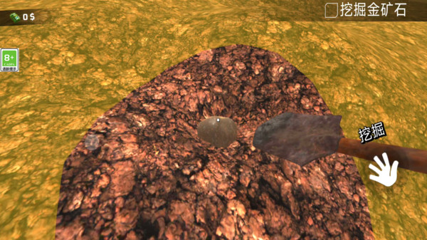 2.手动进行挖掘:点击铲子进行挖掘操作,在目标位置反复敲击泥土,直到发现金矿或宝石资源为止。