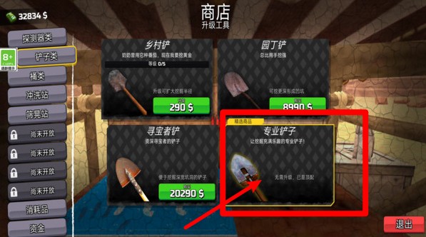 1.商店购买铲子:进入商店界面后可选择不同类型铲子,购买专业铲能提升效率并挖掘更深层的高价值矿石。