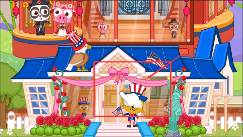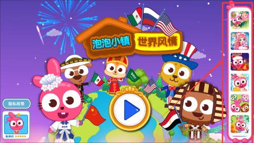 2、游戏融合了世界文化元素,玩家可以探索中国、俄罗斯、美国等六个国家的特色风情,通过换装、美食等多样化互动了解不同国家文化。