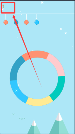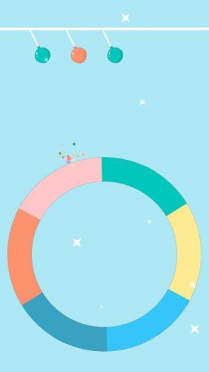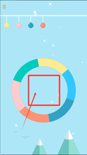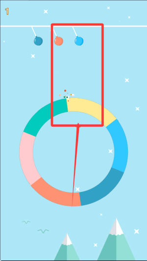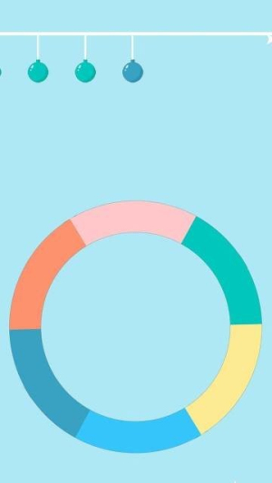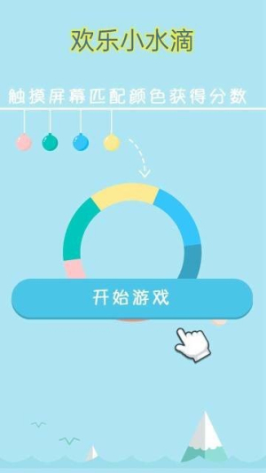 1、玩家通过点击屏幕控制水滴下落,需要精准判断落点位置,使水滴落在相同颜色的圆盘区域获得分数。