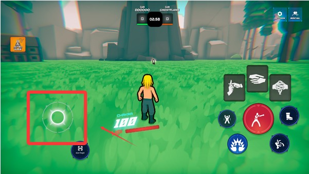 3、开始游戏后滑动左下角摇杆即可移动角色,右侧则是技能。