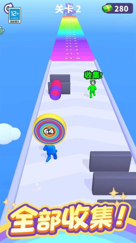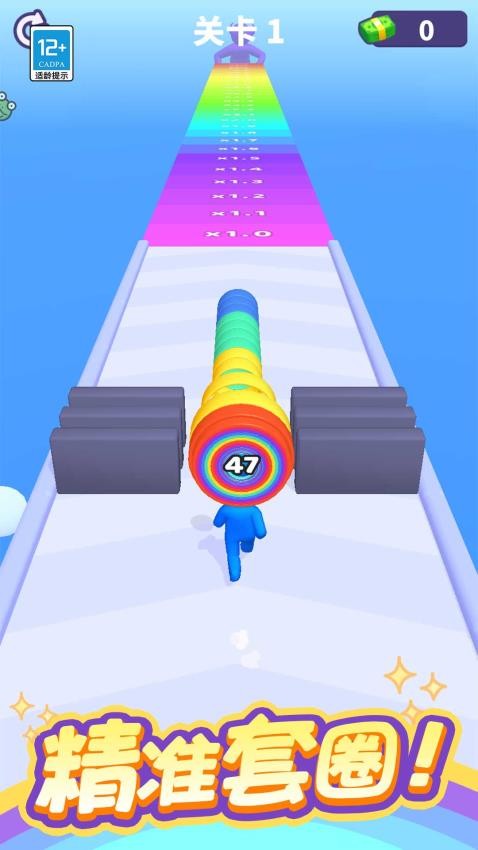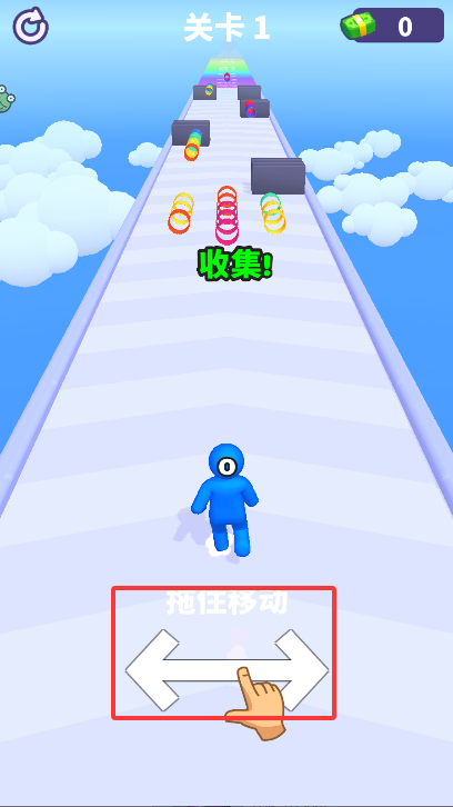 3、开始游戏后,左右滑动屏幕即可移动人物收集胶圈。