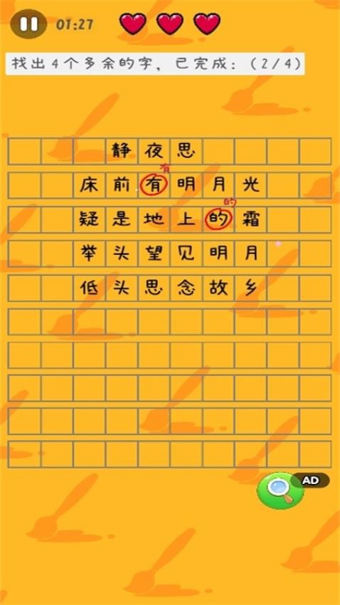 找茬你行吗手机版将语文知识与趣味游戏完美结合,打造出富有意义的学习体验,它既能让玩家放松心情,也能提升语文素养,持续更新的内容和优化的游戏体验让作品保持长久活力,是文字游戏爱好者不容错过的精品之作。