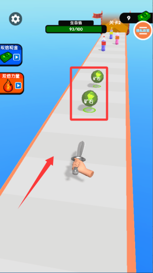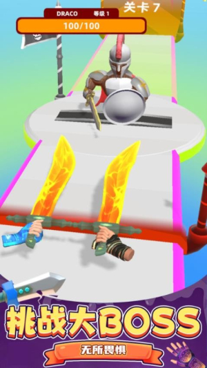 2、在跑酷过程中尽量收集路上的宝剑道具,积累足够数量后触发合成进化。选择适合自己的强化方向,提升闯关效率和生存能力。