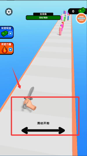1、基础操作用单指滑动控制,通过左右划动调整宝剑移动方向。上划跳跃,下划冲刺,简单直观的操作体系。
