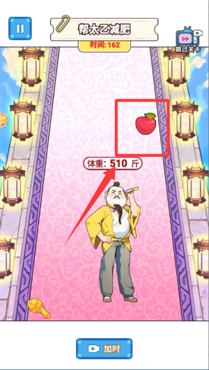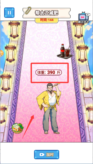 2、合理收集沿途的哑铃和果蔬道具,这些能帮助你减重,只有达到指定体重标准才能顺利通过关卡终点。