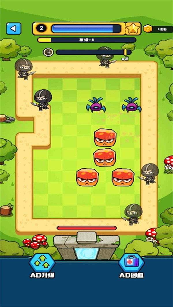 刷新了玩家对塔防游戏的认知,以灵活操作主角忍者单挑海量怪物,体验满屏割草的快感,真正实现从防守到反击的畅快转变。