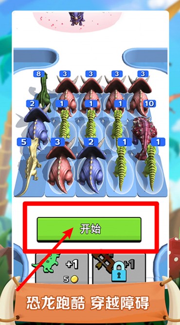 1.点击开始按钮:确认阵容无误后点击绿色开始键,即可进入跑酷阶段,体验高能冲刺的紧张氛围与乐趣。