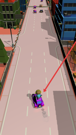 3、成功抢夺紫色车后,驾驶新车在公路挑战,突破更长路段,收集道具、积累分数,解锁更多车辆,推进游戏进度。