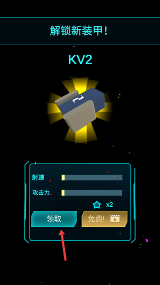 3、合成后解锁新装甲,如KV2,点击领取,获取新装甲,增强机甲属性,推进游戏。