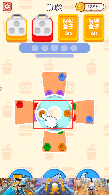 1、进入新关卡先观察钉子,根据要求规划收纳方案,标记关键位置和特殊颜色。