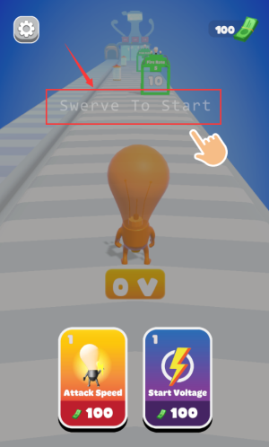 1、点击红框Swerve To Start区域,滑动开始游戏挑战。