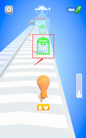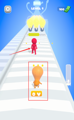3、控制红框灯泡人角色,沿跑道避开障碍物前进。