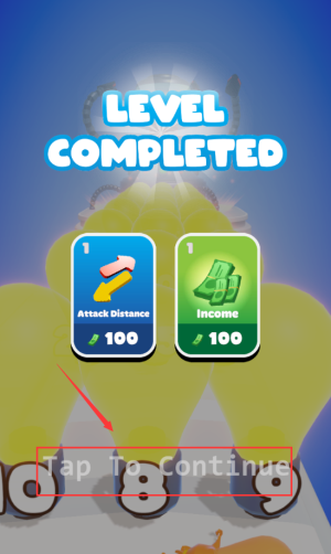 4、点击红框Tap To Continue,领取奖励进入下一关。