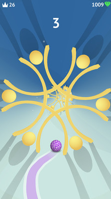 2、跑酷过程中,紧盯前方凌乱轨道上的障碍物,及时划动屏幕让小球切换轨道或跳跃,避开阻碍持续前进。