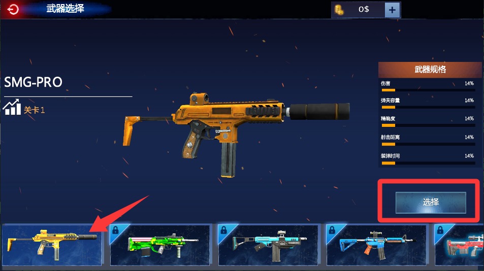 2、在武器库界面左右滑动浏览枪械,选中狙击步枪会提升射程,选择冲锋枪则增强近战爆发火力输出。
