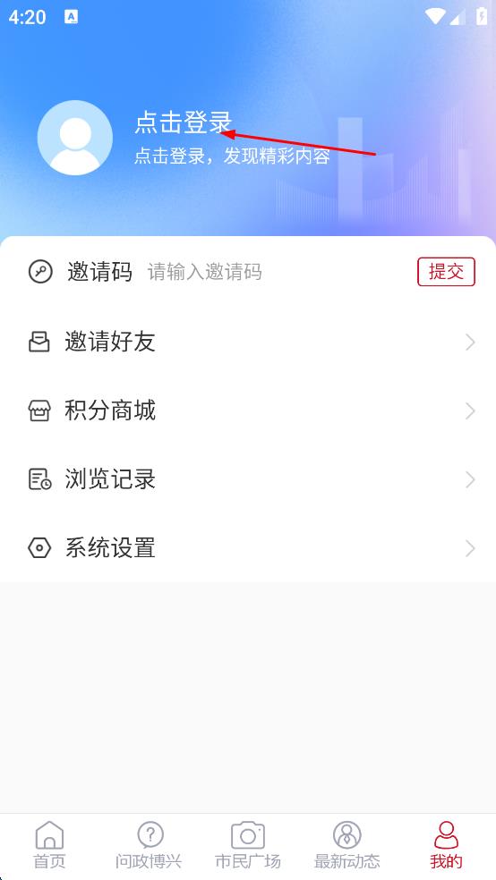 3、在个人页面,点击上方点击登录按钮,进入用户登录界面。