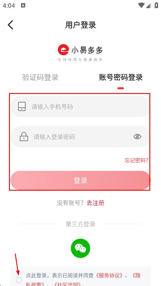4、在用户登录界面,勾选点此登录表示已阅读并同意相关协议,再进行后续登录操作。