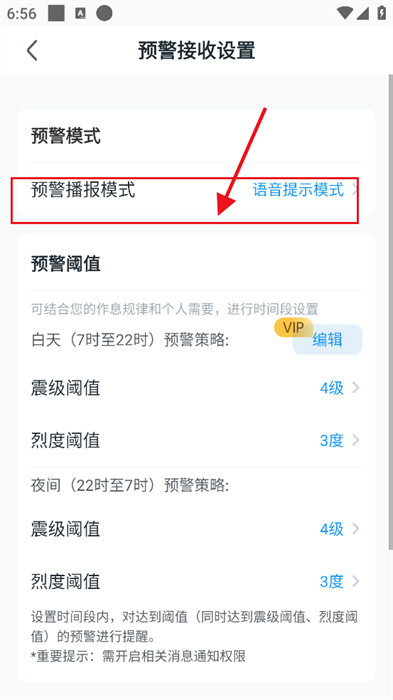 6、最后,将语音提醒打开,这样在预警是第一时间就能进行防范。