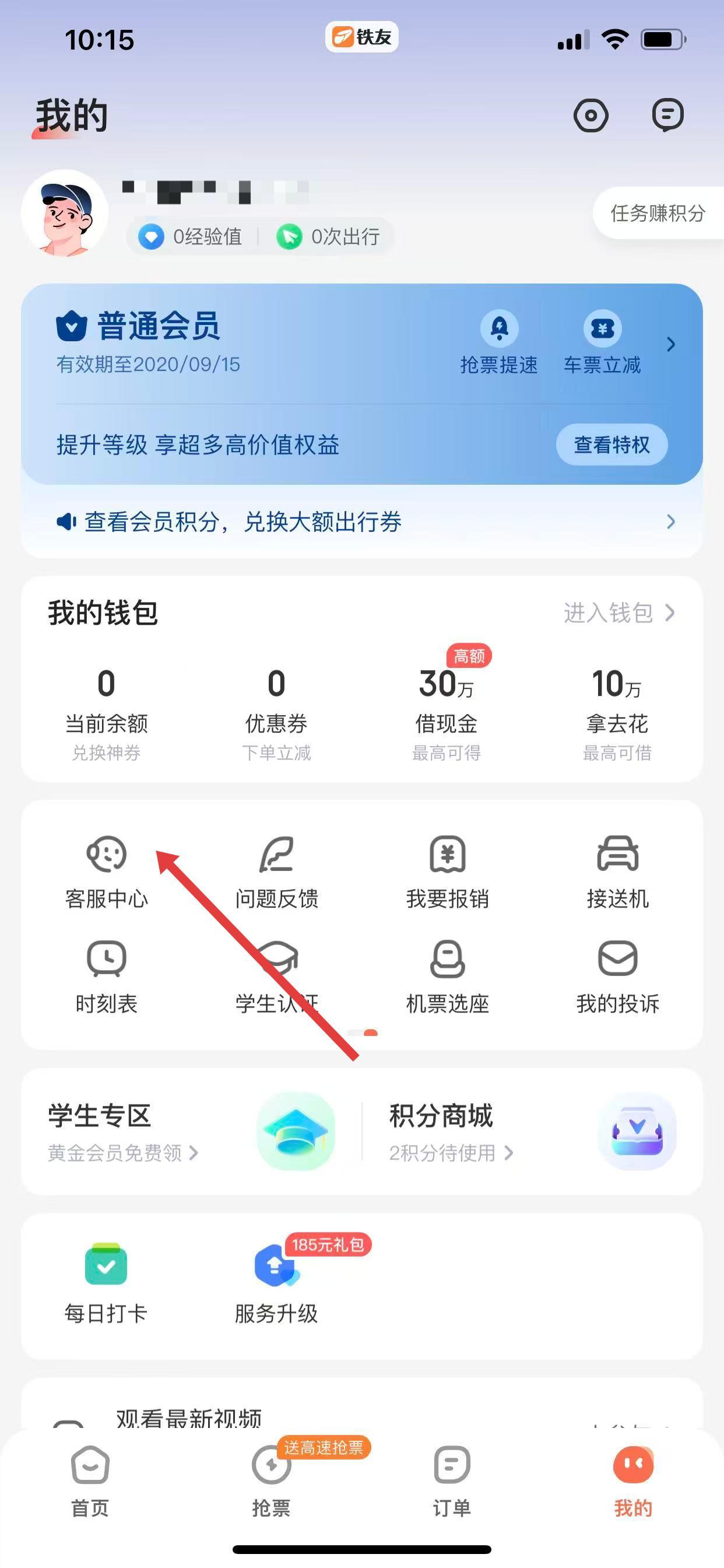 2、进入“我的”页面后,在功能选项中找到客服中心并点击。