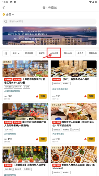 2、在商城页面,选择中秋礼惠分类,进入该分类的商品列表页面。
