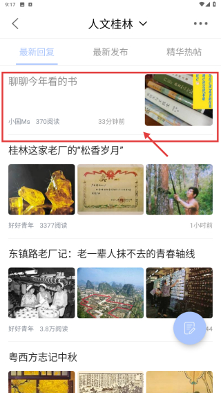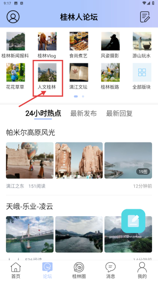 2、在论坛页面,点击人文桂林板块,进入该板块的帖子列表页面。