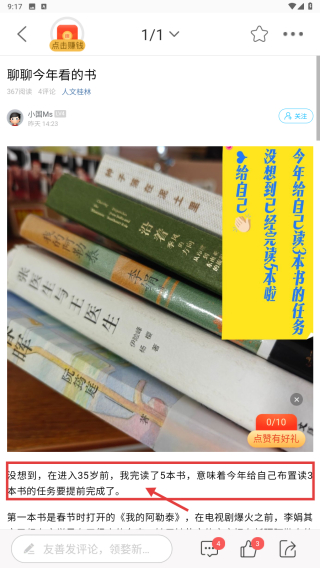 3、选择聊聊今年看的书帖子条目,进入帖子详情页面。