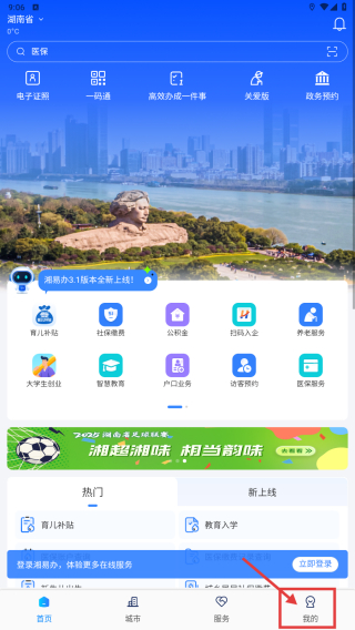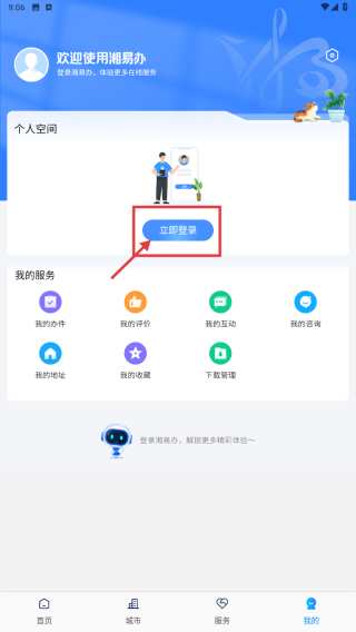 1、打开湘易办政务应用,点击底部我的选项,进入个人中心页面。