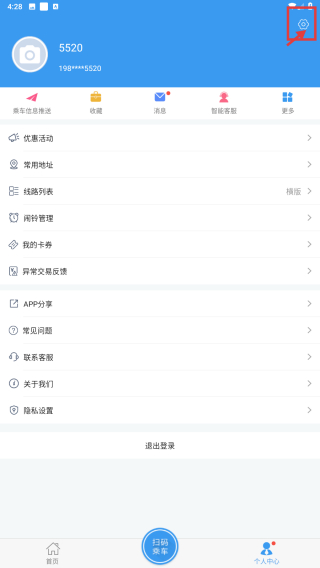 1、打开公交服务类应用,点击底部个人中心选项,进入个人中心页面。