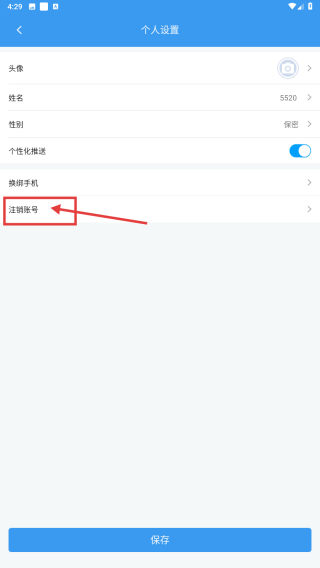 3、在个人设置页面,点击注销账号选项,进入账号注销说明页面。