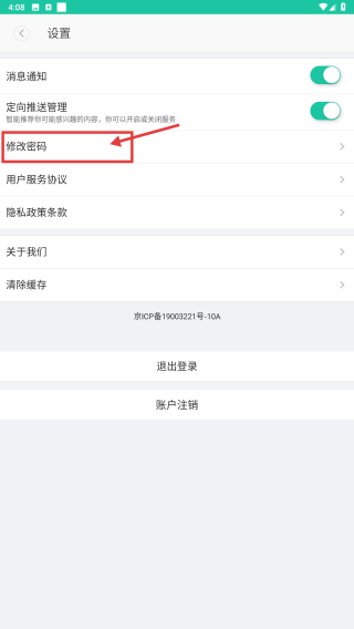 3、在设置页面,点击修改密码选项,进入密码修改页面。