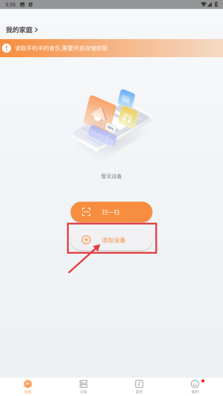 1、打开智能设备管理应用,点击添加设备按钮,进入设备添加页面。