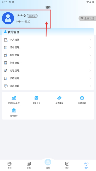 1、进入政务服务类应用的个人中心页面,点击底部的我的选项。