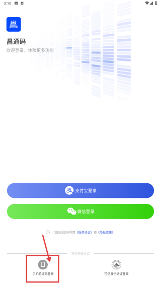 3、选择手机号验证码登录选项,进入手机号登录页面。